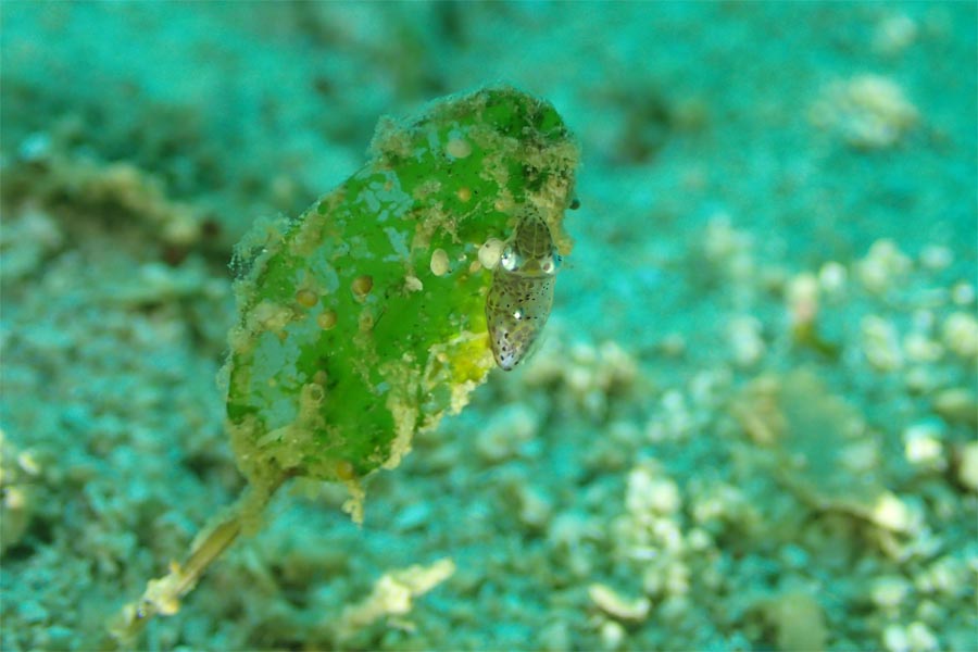 ウミヒルモにくっついてることが多いので、指示棒で葉っぱを擦りながら探すこと数十分。結局アタシは見つけられなかったけどガイドさんが見つけてくれました。