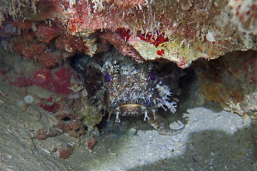 ハナヒゲウツボはときどき住み家を変えるそうですが、それはたいてい夜半のことでこのように昼間に出てくるのはとっても珍しいそうです。確かにけっこう潜ってるけど全身見たの、これが2度目ですから。