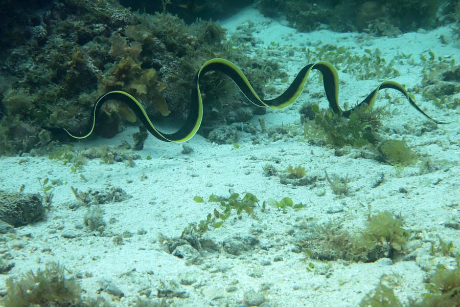 ハナヒゲウツボの全身見たの、これが2度目です。初めて見たときは、こんなに長い胴体してたと知ってホントに驚きました。