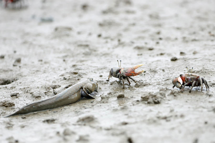 チビに威嚇するムツゴロウ。