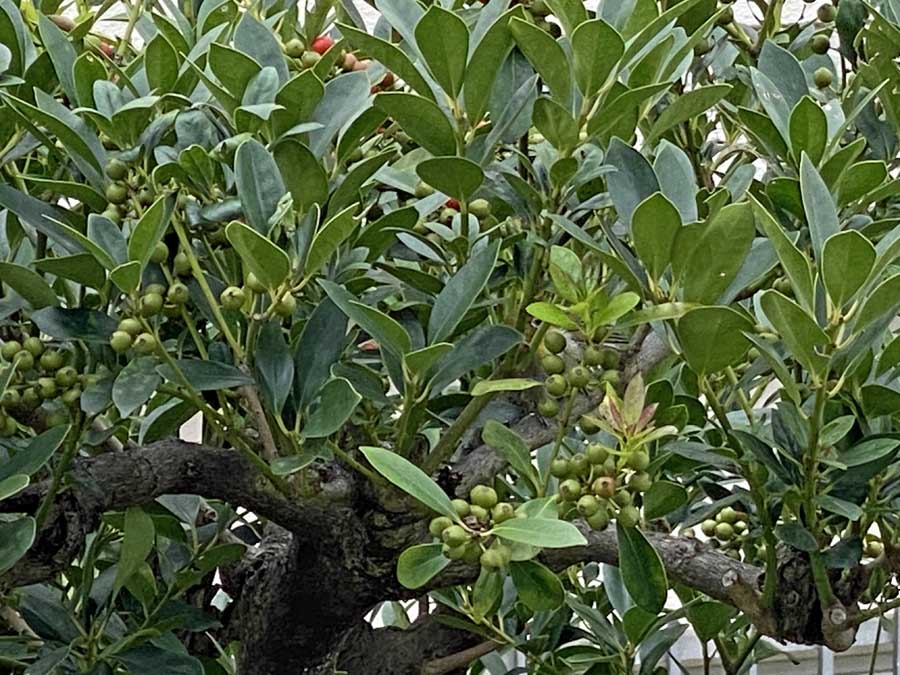 この実を食しに色んな野鳥がやってくる。オナガ、ヒヨドリ、シジュウカラにキジバト、ときにはワカケホンセイインコが群れを成してやってくる。昨日はメジロがつがいで訪れてくれた。