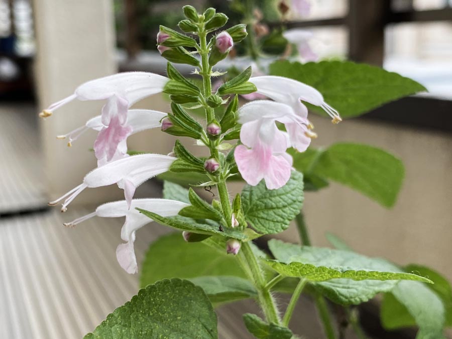 花の形からしてサルビアっぽいけど、サルビアって真っ赤じゃなかったか? こんな淡いピンクのもあるんかしら?