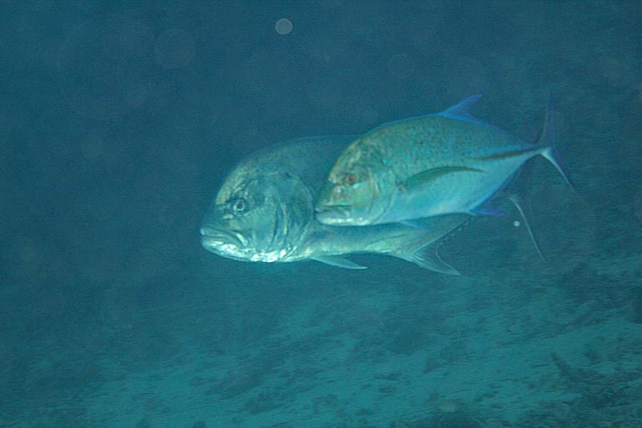 仲の良いロウニンアジとカスミアジのペアもいました。なんか昨日、ニュースで似たような情景見たような気もするなぁ………。